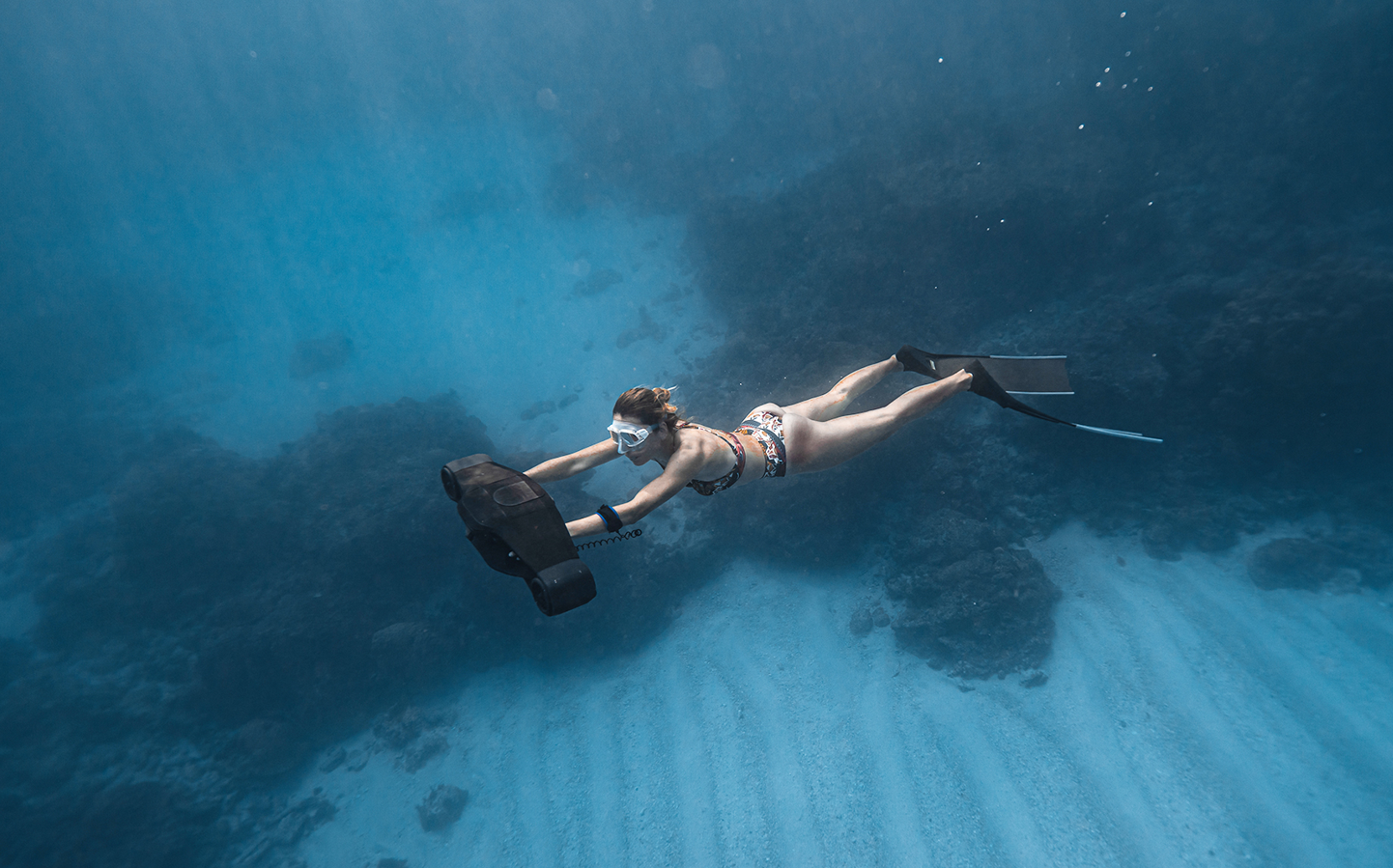 2020年にドイツのレッドドットデザイン賞を受賞した水中プロペラ「POSEIDON」は、TFT LCD画面で速度、深度、バッテリーを確認可能。1200Wのパワーで滑らかな推進力を提供し、スリルある高速ダイビングからゆっくりとした観光まで対応。GoProと組み合わせれば、美しい水中世界を記録・共有でき、思い出としても保管可能です。