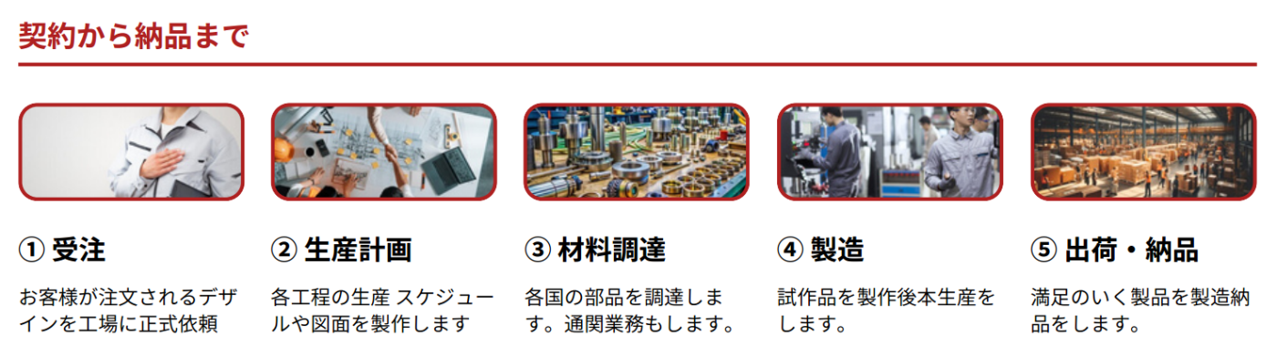 当社の強みは、製品設計から製造、検査、納品までの一貫したサービスを提供し、お客様の手間を軽減するとともに、競争力のあるコストパフォーマンスを実現している点です。技術力と品質管理に自信を持ち、お客様の独自ブランドを市場に成功裏に投入するためのパートナーとして全力を尽くします。